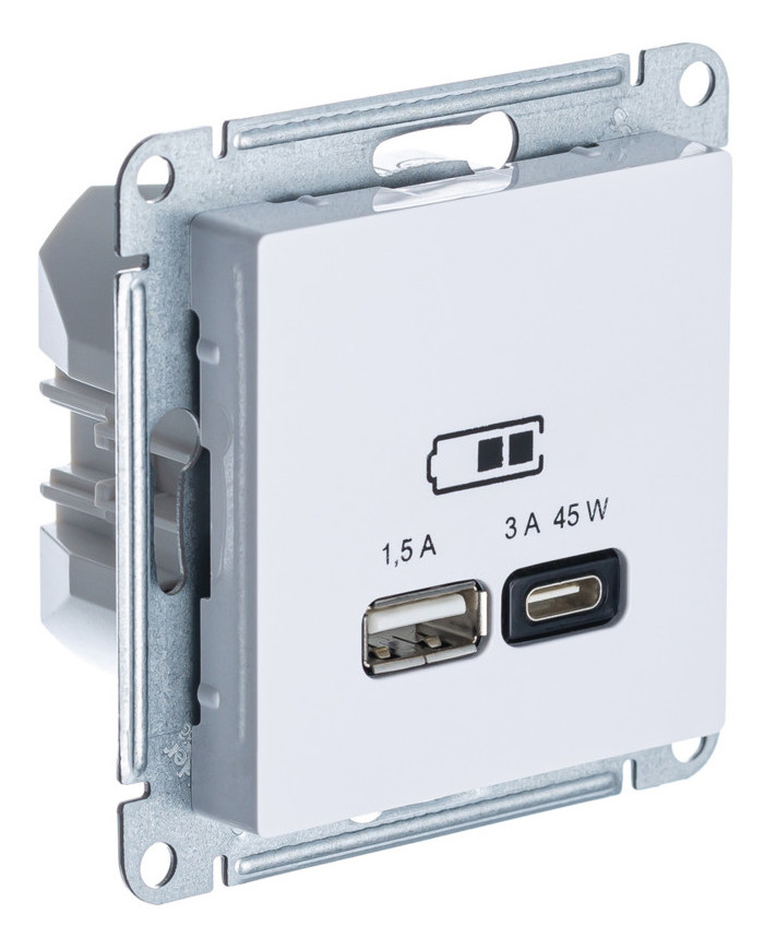 Розетка USB type-A+C 45 Вт с быстрой зарядкой Atlas Design Antique, AtlasDesign Air, Atlas Design, USB type-C 5V, USB type-A 5V, двойная, цвет - лотос