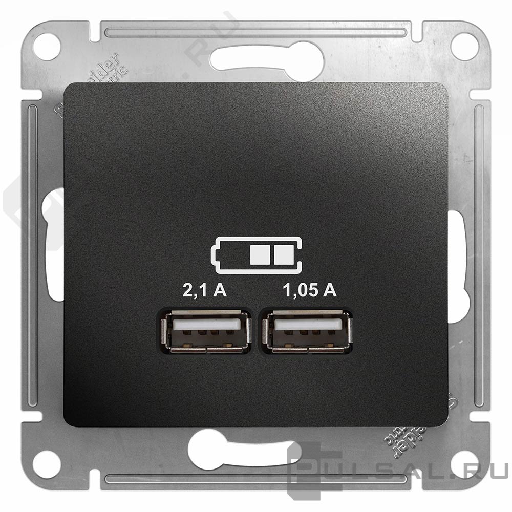 Розетка USB type-A, 2.1А Glossa, USB type-A 5V, двойная, цвет - антрацит